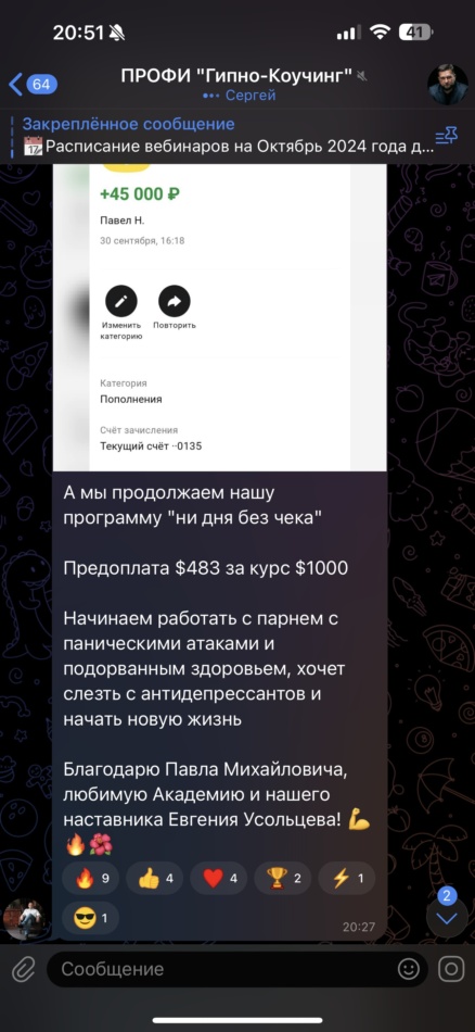 Я настоящий фанат методики и инструментов, переданных нам Павлом Михайловичем. В «Гипно-Коучинг» я пришёл следом за своей женой, с полным отсутствием опыта в подобных сферах.